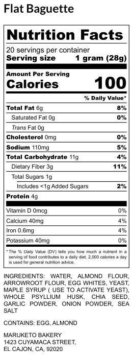 Water, almond flour, arrowroot flour, egg, egg white, yeast, whole psyllum husk, chia seeds, maple syrup (use to activate yeast), salt, garlic powder, onion powder, poppy seeds, sesame seeds.