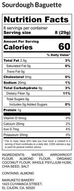 WATER, ALMOND FLOUR, ARROWROOT FLOUR, WHOLE PSYLLIUM HUSK, CHIA SEED, FLAXSEED, SALT