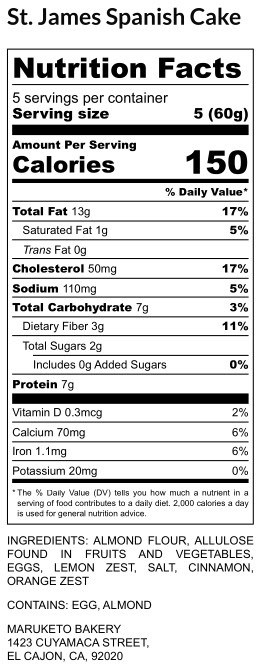 ALMOND FLOUR, NON-GMO ALLULOSE, SALT, CINNAMON, LEMON EXTRACT, ORANGE EXTRACT